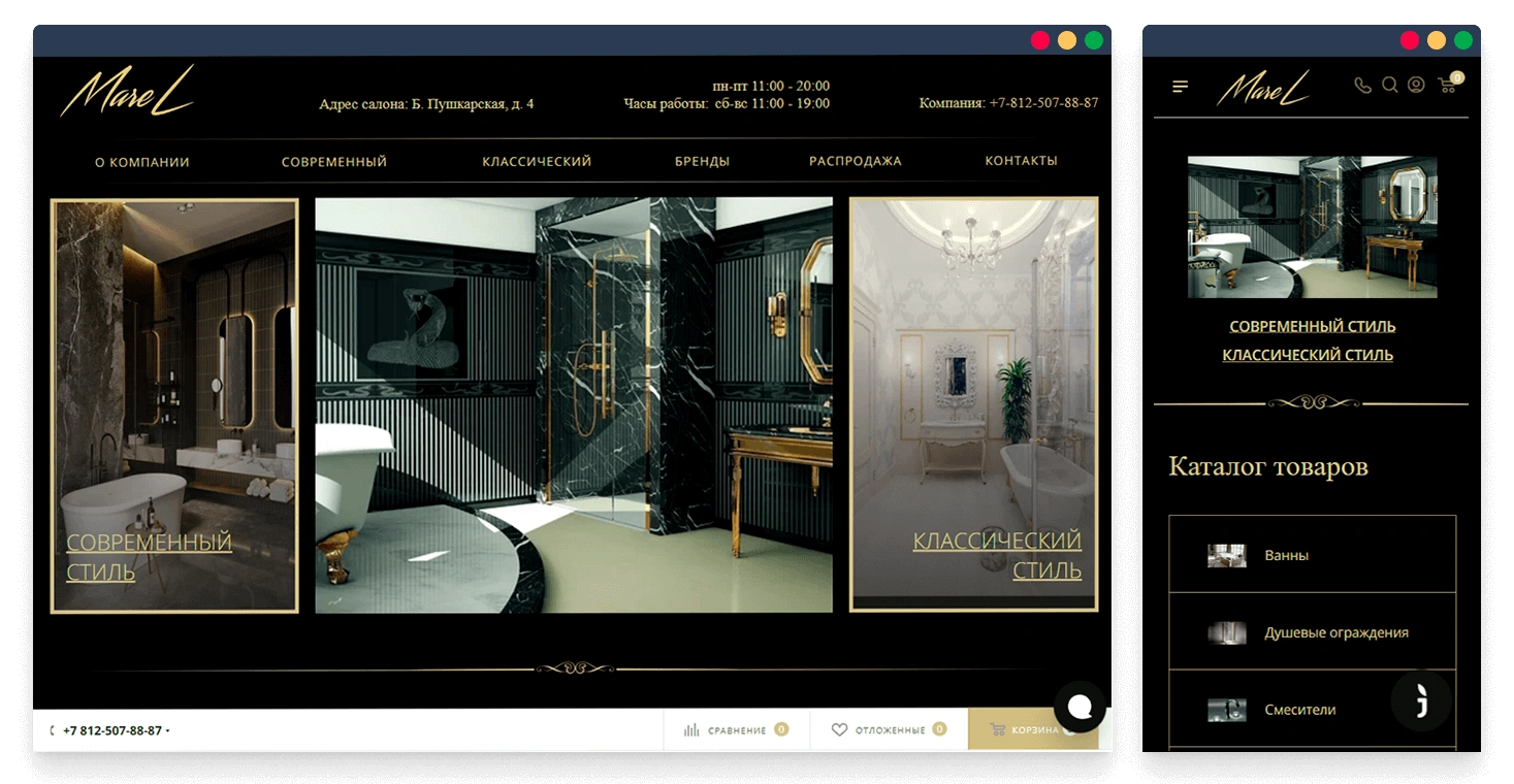 Клиент обратился в нашу компанию, чтобы создать сайт, так как компания Marel уже имела популярный шоу-рум в самом центре Санкт-Петербурга, но не имела представительства компании в интернете. Клиент был против шаблонного интернет-магазина. Хотел индивидуальный дизайн с минимальными вложениями. Нашим специалистам нужно было создать сайт, разработать уникальный дизайн и проработать его оформление. Наполнить каталог товарами и услугами, подготовить онлайн-магазин к сео продвижению.