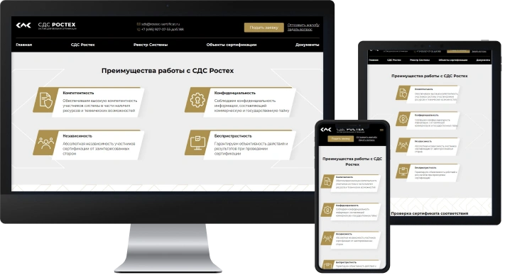 Компания Ростех осуществляет добровольную сертификацию различных систем менеджмента, оптимизации производства и управления, безопасности труда и прочих объектов. Компания уже имела собственный сайт, но обратилась к нам за обновлением ресурса, оптимизацией и настройкой максимальной безопасности для основного сайта и дочерних компаний, а также приведению сайта в надлежащий вид на 2023 год.